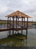 Беседка даже с не полностью покрытой крышей серьёзно добавила тени на пруд