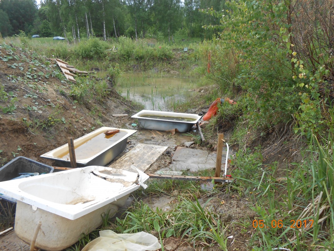 Ну и для полного завершения этапа: полевой цех демонтирован, пруд заливается, будет дафниевая яма, до осени. Рама инкубатора и ванны будут затоплены. Раму снять не могу- генератора нет, а ванны вытащить с больной ногой не могу.