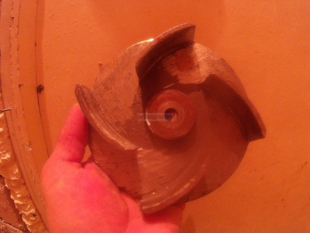 Крыльчатка после переточки. Отполирована. Показал, как надо сделать лопатки, и тогда загреб будет больше (потеряется подьем, но он и не нужен нам)
