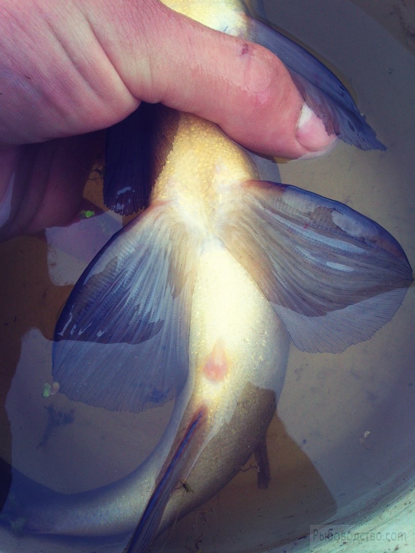 Клюнул сегодня на огрызок обычного червя и среднюю глубину, жив ,здоров! Сопротивляется конечно покруче карпа :good: . Судя по всему это самец ?