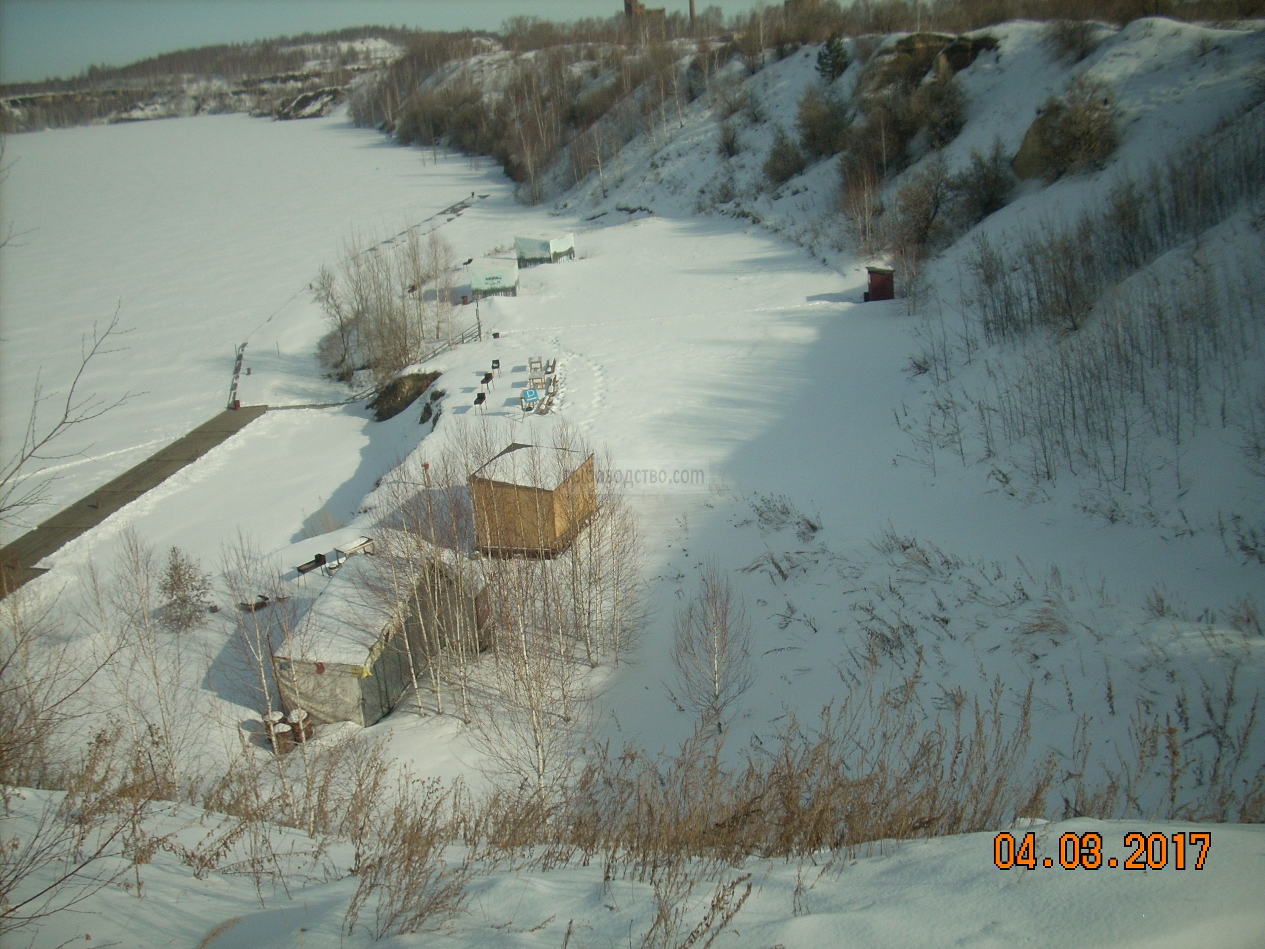 зима: стоянка машин на верхней площадке, вниз пешком 100м.