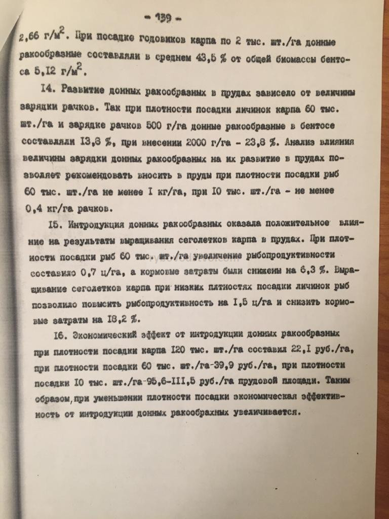 Помещаю вводную и выводы диссертации по развитию культур водяного ослика и бокоплава в прудах