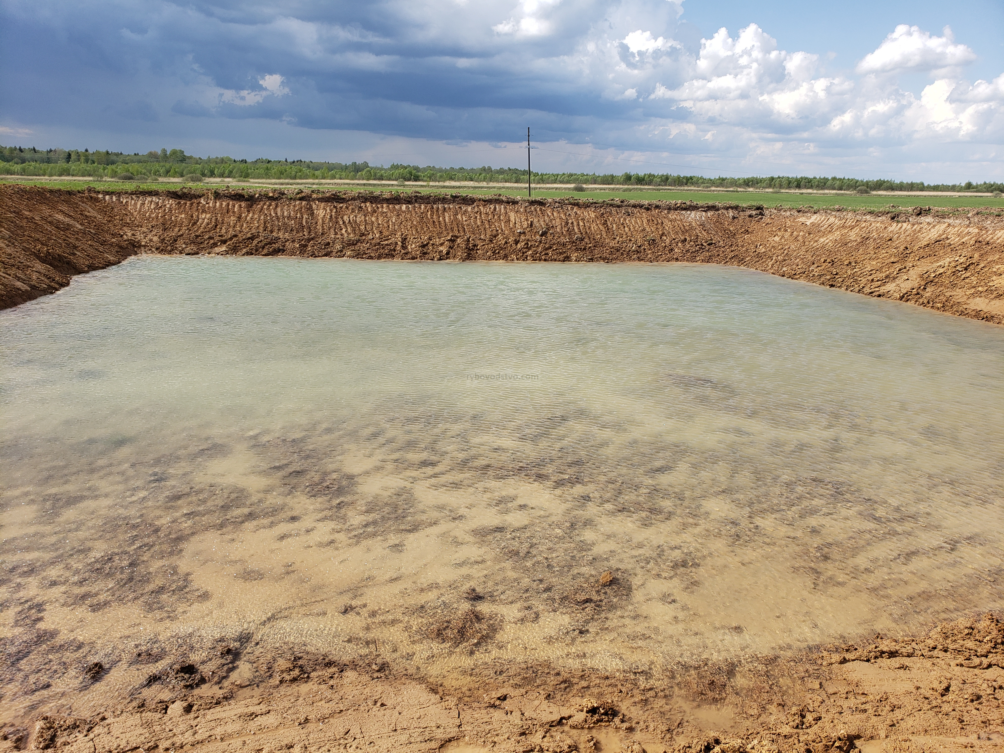 В субботу 15.05.21г. был на участке и наблюдал за свеже выкопанным прудом. Воды прибавилась порядка 30см за 5дней, в пересчете на кубы 200м3, поток воды из мелиоративной системы почти не изменился, буду наблюдать дальше. Вода на удивление прозрачная, думаю при запуске жителей они ее здорово подмутят.